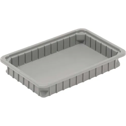 Dandux® Dividable Stackable Plastic Box, 16"L x 11"W x 1-3/4"H, Gray