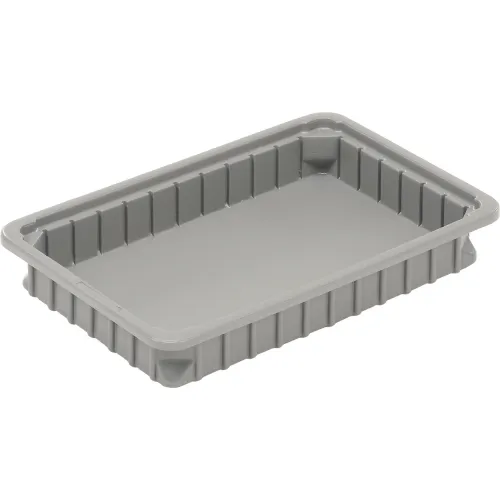 Dandux® Dividable Stackable Plastic Box, 16"L x 11"W x 2-1/2"H, Gray
