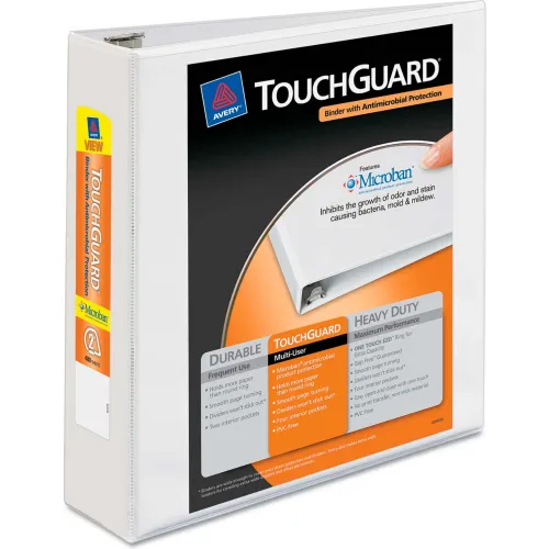 Avery® Touchguard Antimicrobial View Binder with Slant Rings, 2" Capacity, White