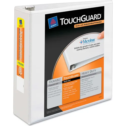 Avery® Touchguard Antimicrobial View Binder with Slant Rings, 3" Capacity, White