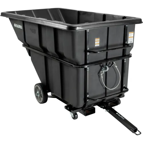 Global Industrial Towable & Forkliftable Plastic Tilt Truck, 1.5 Cu. Yd., 2000 Lbs. Cap, Black