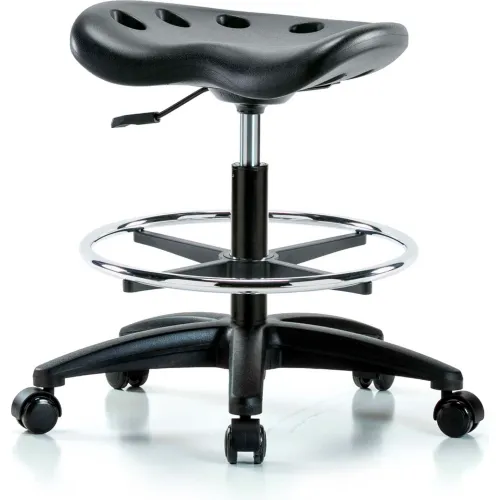 Interion® Polyurethane Tractor Stool With Foot Ring - Black w/ Black Base
