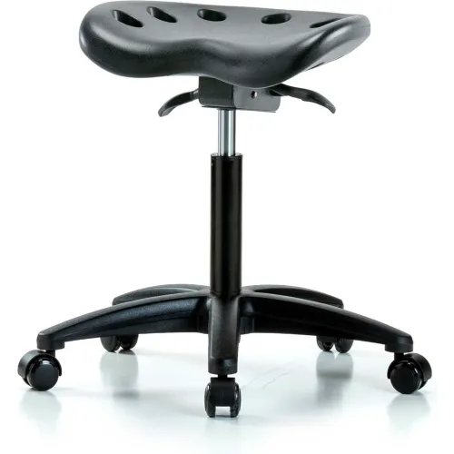 Interion® Polyurethane Tractor Stool With Seat Tilt - Black w/ Black Base