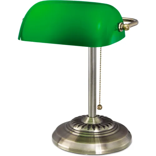 Alera® Traditional Banker's CFL Lamp, 13W, Green Glass Shade/Antique Brass