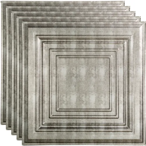Fasade Traditional Syle # 3 - 23-3/4" x 23-3/4" PVC Lay In Tile in Crosshatch Silver - PL5421