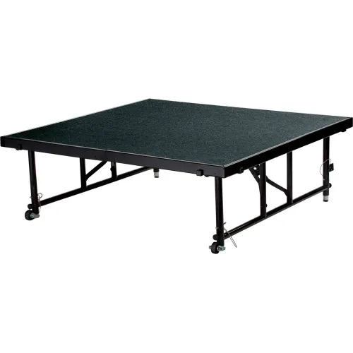 National Public Seating® Transfix 4'L x 4'W Portable Stage w/ Adjustable 24-32"H & Black Carpet