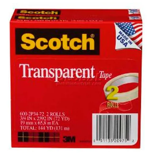 Scotch® Transparent Tape 600-2P34-72, 3/4" x 2592", 3" Core, 2 Rolls/PK