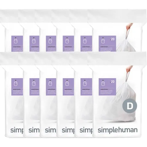 simplehuman® Trash Can Liner Code D - 5 Gallon, 15.8 x 28, 1.18 Mil, White, Pack of 240
