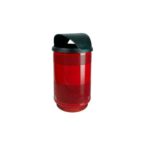 Witt Stadium Series® Perforated Steel Round Trash Can W/Hood Top, 55 Gallon, Red