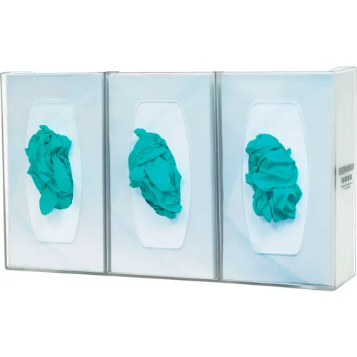 Bowman® Triple Glove Box Dispenser, Divided, 17.08"W x 10.11"H x 4.22"D, Semi-Transparent