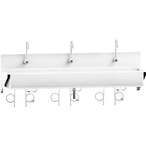 Blickman Triple Station Windsor Scrub Sink, Wall Mounted w/ Infrared Water Control, Stainless Steel