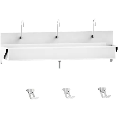 Blickman Triple Station Windsor Scrub Sink, Wall Mounted with Foot Action Control, Stainless Steel