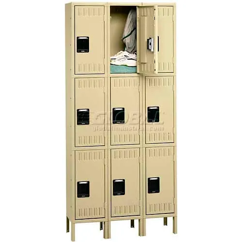 Tennsco® 3-Tier 9 Door Locker w/ Legs & Recessed Handle, 36"W x 15"D x 78"H, Putty, Assembled