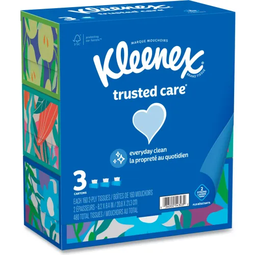 Kleenex® Trusted Care Facial Tissue, 2-Ply, White, 160 Sheets/Box, 3 Boxes/Pack, 12 Packs/Carton