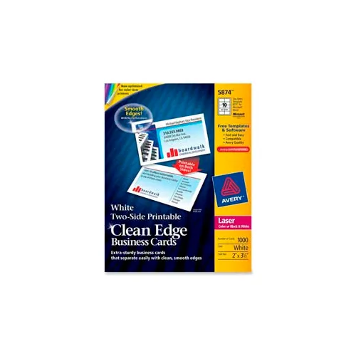Avery® Clean Edge Business Cards, Laser, 2" x 3.5", White, 10 Cards/Sheet, 100 Sheets/BX