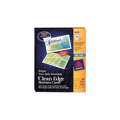 Avery® True Print Business Cards, 2" x 3.5", White, 1000 Cards, 10 Cards/Sheet, 100 Sheets/BX
