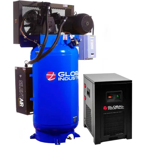 Global Industrial Silent Two Stage Piston Air Compressor w/Dryer, 7.5 HP, 80 Gal, 1 Phase,230V