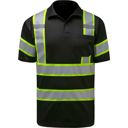 GSS Two Tone Short Sleeve Polo Shirt w/ 1 Pocket, Polyester, Black, 3XL