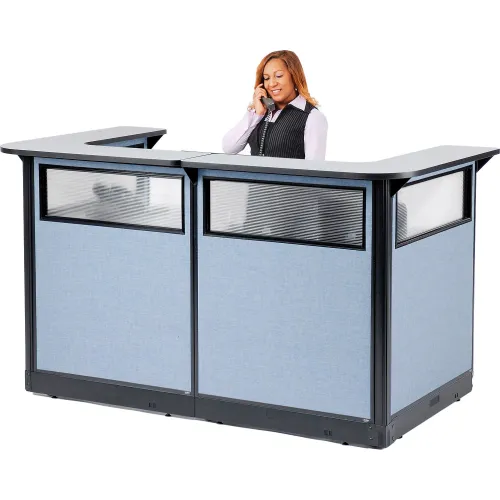 Interion® U-Shaped Reception Station w/Window & Raceway 88"Wx 44"Dx 46"H GRY Counter/BLU Panel
