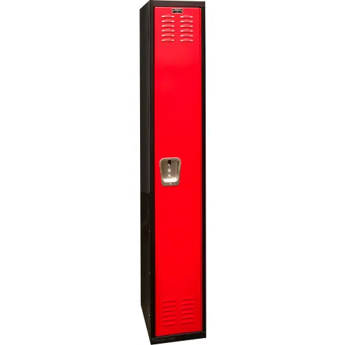 Hallowell® 1-Tier 1 Door Tie Locker, 12"W x 18"D x 72"H, Black/Red, Assembled