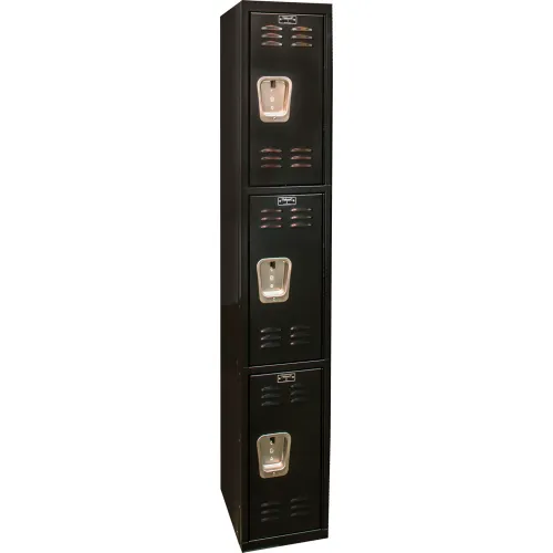 Hallowell® 3-Tier 3 Door Tie Locker, 12"W x 18"D x 72"H, Black, Assembled