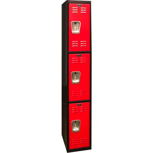 Hallowell® 3-Tier 3 Door Tie Locker, 12"W x 18"D x 72"H, Black/Red, Assembled