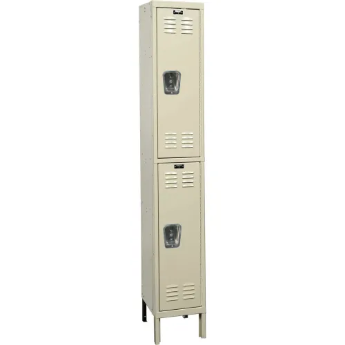 Hallowell® 2-Tier 2 Door Premium Locker, 15"W x 18"D x 78"H, Tan, Assembled