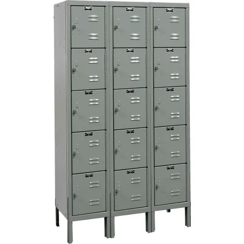 Hallowell® 5-Tier 15 Door Premium Locker, 36"W x 12"D x 66"H, Dark Gray, Unassembled