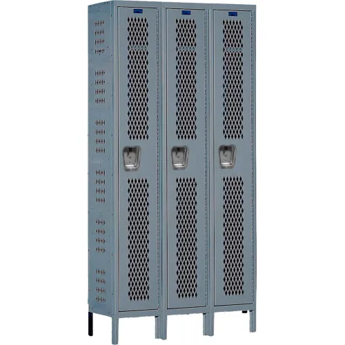 Hallowell® 1-Tier 3 Door Heavy Duty Ventilated Locker, 45"W x 15"D x 78"H, Dark Gray, Assembled