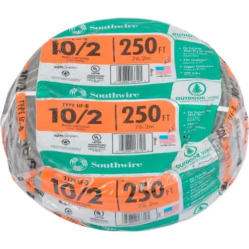 Southwire 13056755 UF-B Underground Feeder Cable, 10/2 AWG, 250 ft
