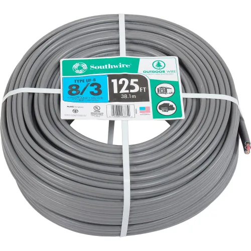 Southwire 14783502 UF-B Underground Feeder Cable, 8/3 AWG, 125 ft
