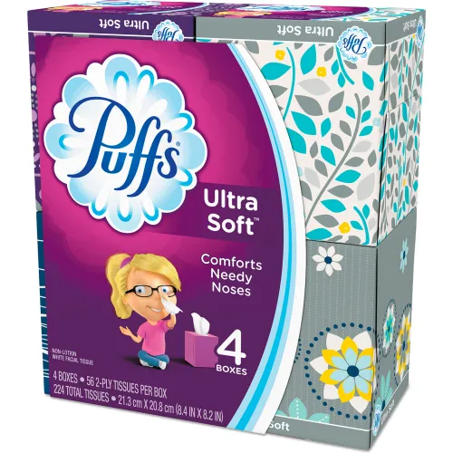 Puffs® Ultra Soft Facial Tissue, 2-Ply, White, 56 Sheets/Box, 4 Boxes/Pack, 6 Packs/Case