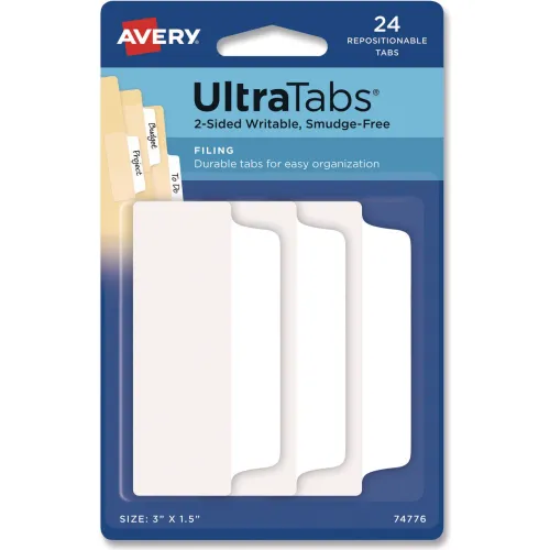 Avery® Ultra Tabs Repositionable Tabs, 3" x 1-1/2", White, 24/Pack