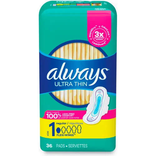 Always® Ultra Thin Pads, Regular, 36 Pads/Pack, 6 Packs/Case - 08322