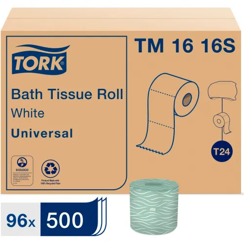 Tork Universal Bath Tissue, 2-Ply, White, 4 x 3.75 Sheet, 500 Sheets/Roll, 96/Case - TM1616S