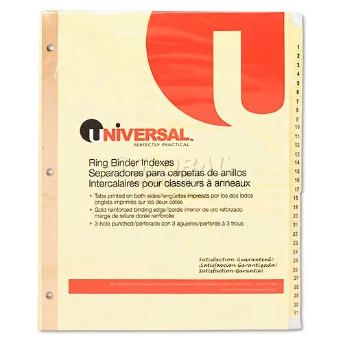 Universal One Preprinted Plastic-Coated Tab Dividers, 31 Numbered Tabs, Letter, Buff, 31/Set