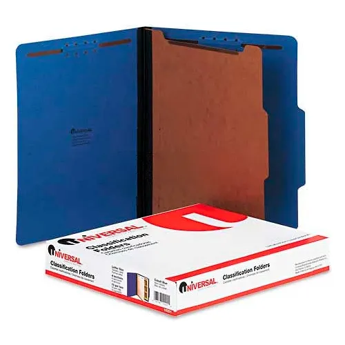 Universal® Pressboard Classification Folders, Letter, Four-Section, Cobalt Blue, 10/Box
