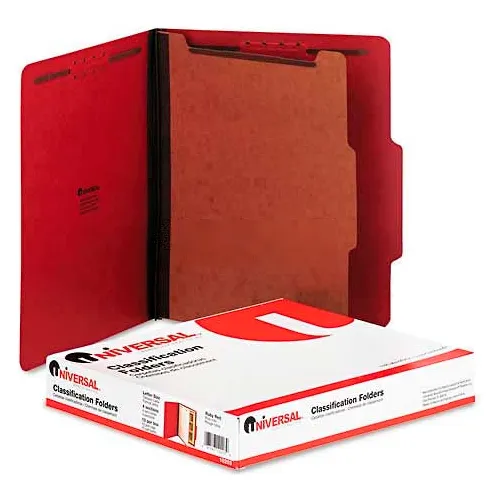 Universal® Pressboard Classification Folders, Letter, Four-Section, Ruby Red, 10/Box