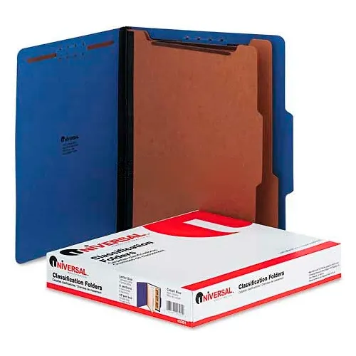 Universal® Pressboard Classification Folders, Letter, Six-Section, Cobalt Blue, 10/Box