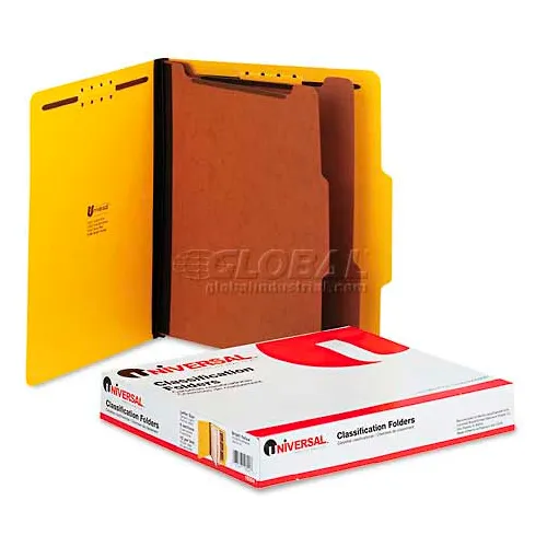 Universal® Pressboard Classification Folders, Letter, Six-Section, Yellow, 10/Box