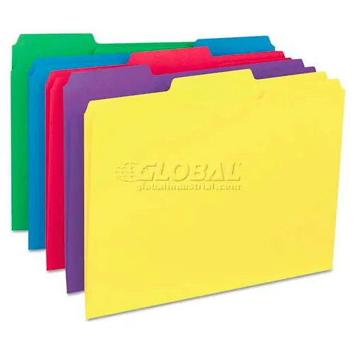 Universal® Recycled Interior File Folders, 1/3 Cut Top Tab, Letter, Assorted, 100/Box