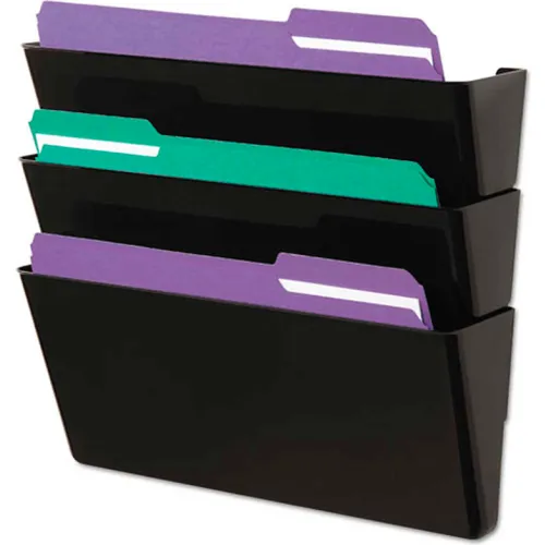 Universal Recycled Wall File, Three Pocket, Plastic, Black