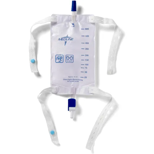 Medline Urinary Leg Bags w/ Elastic Straps, Flip-Drain Spout, 20 oz., Medium, Pack of 48