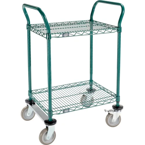 Nexel®, 2 Shelf, Utility Cart, Poly-Green,24"W x 18"D x 39"H, Poly Casters,2 Rigid, 2 Brake