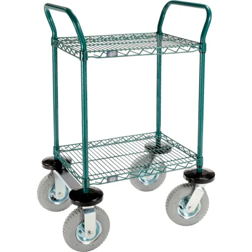 Nexel®, 2 Shelf, Utility Cart, Poly-Green, 24"Wx18"Dx 42"H, Pneumatic Casters,2 Swivel, 2 Rigid