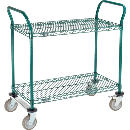 Nexel®, 2 Shelf, Utility Cart, Poly-Green,36"W x 18"D x 39"H, Poly Casters,2 Rigid, 2 Brake