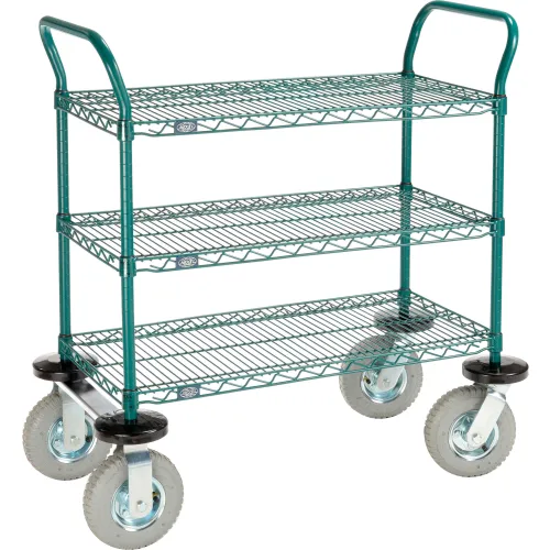 Nexel®, 3 Shelf, Utility Cart, Poly-Green, 36"Wx18"Dx 42"H, Pneumatic Casters,2 Swivel, 2 Rigid