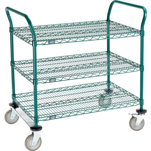 Nexel®, 3 Shelf, Utility Cart, Poly-Green,36"W x 24"D x 39"H, Poly Casters,2 Rigid, 2 Brake