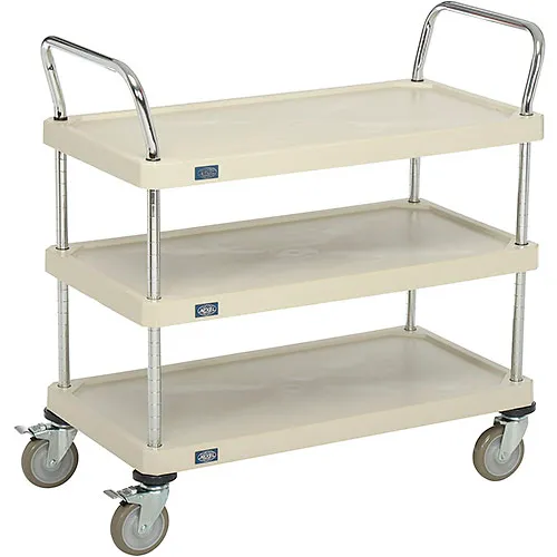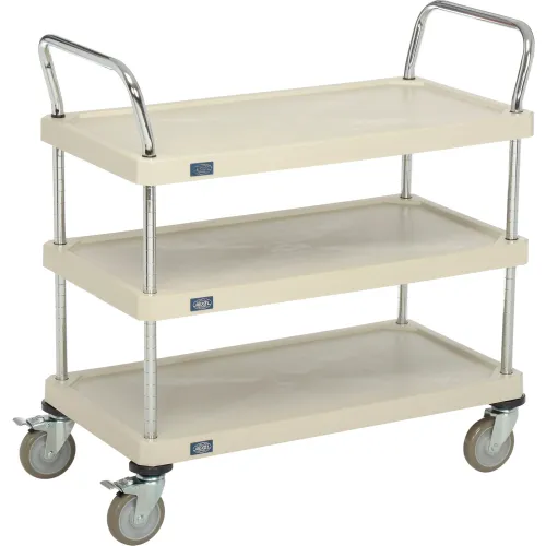 Nexel®, 3 Shelf, Utility Cart, Solid Plastic, 36"Wx18"Dx39"H, Poly Casters,4 Swivel, 2 Brake