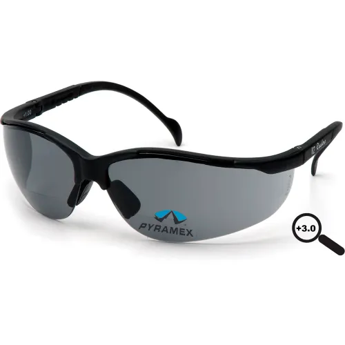 V2 Readers® Safety Glasses Gray +3.0 Lens , Black Frame - Pkg Qty 6